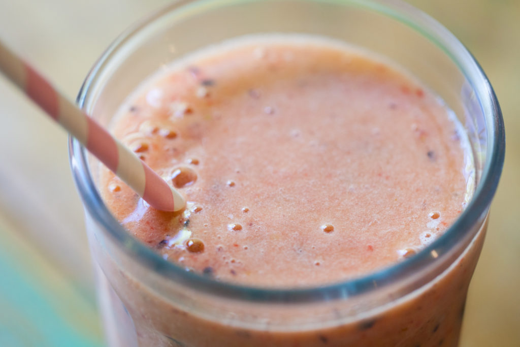 - Add all of the fruit to the blender with the orange juice and blend for 30 seconds on high or until smooth.